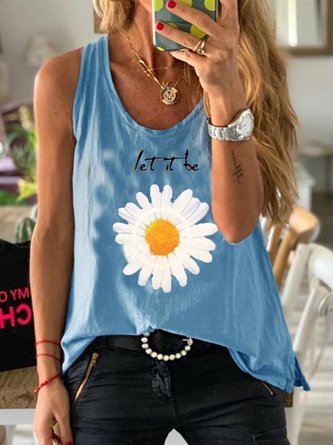 Loose Floral Vacation Crew Neck Tank Top