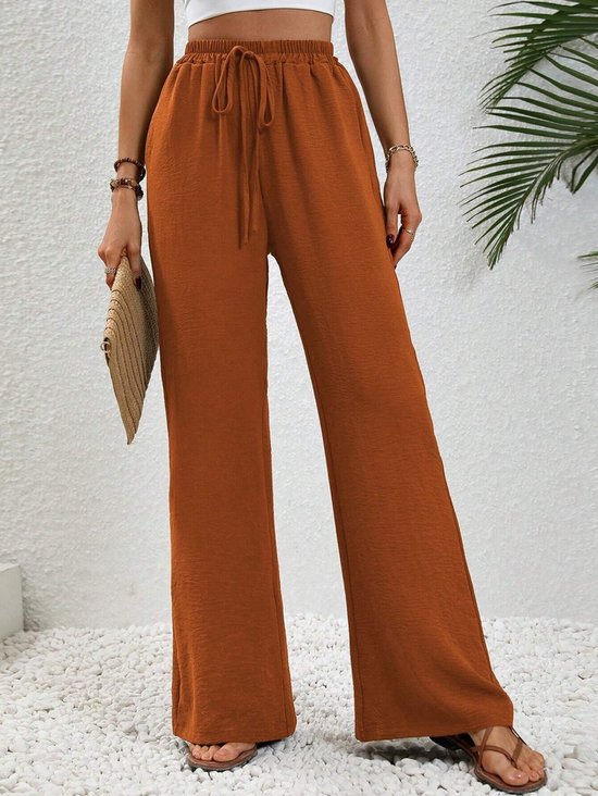Women's Elastic Waist H-Line Wide Leg Pants Daily Going Out Pants Deep Brown Casual Split Joint Plain Spring/Fall Pants
