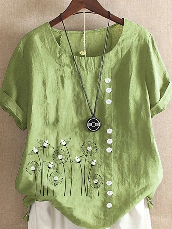 Women's Half Sleeve Blouse Summer Army Green Plain Split Joint Linen Crew Neck Daily Going Out Casual Top