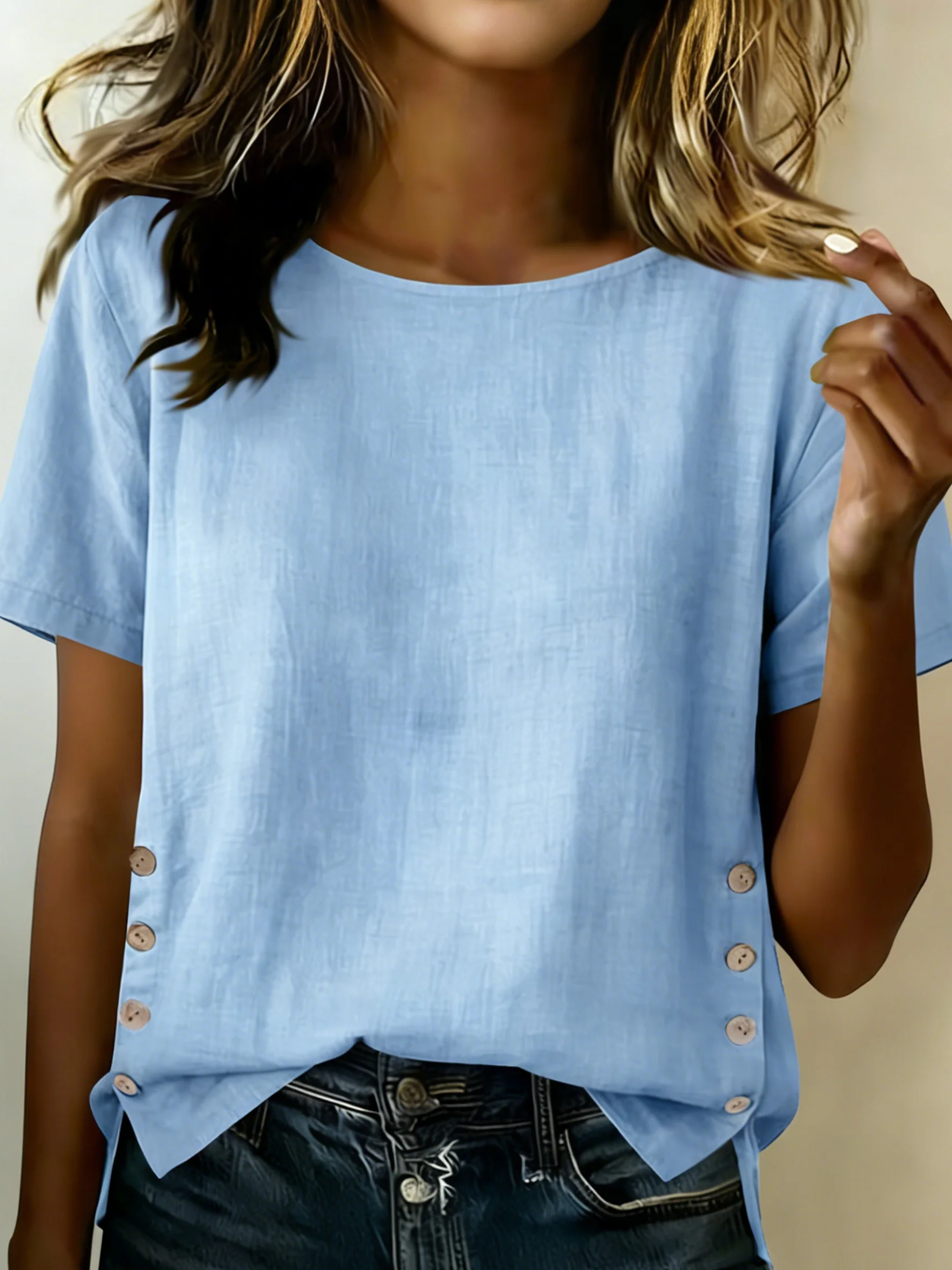 Women Plain Crew Neck Vintage Long Sleeve T-shirt